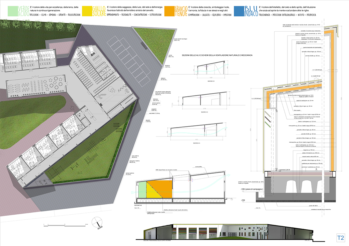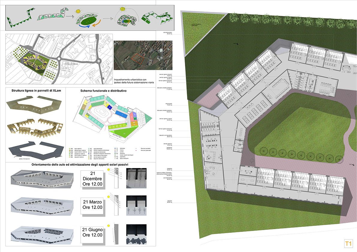 Tra le priorità dovevano esserci l’utilizzo del sole per il soddisfacimento energetico, l’accessibilità immediata e totale, la limitazione dell’accesso agli autoveicoli nelle pertinenze del plesso scolastico.